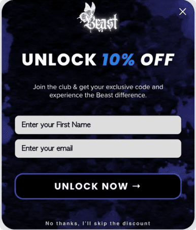Le design de cette Pop-up est très simple → le marché anglophone est beaucoup plus habitué à laisser ses données que le marché francophone.