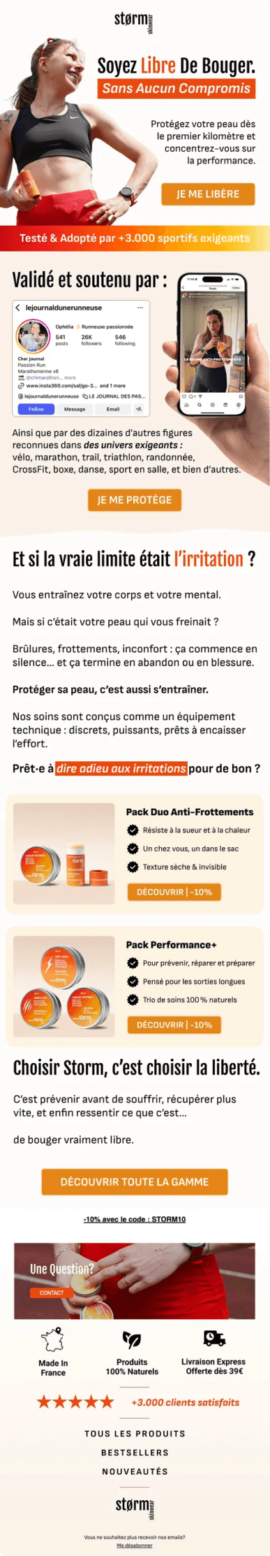 Storm Skinwear développe des soins de la peau pensés pour protéger la peau dans toutes les situations où elle est mise à l’épreuve. Irritations, frottements, rougeurs, tiraillements…