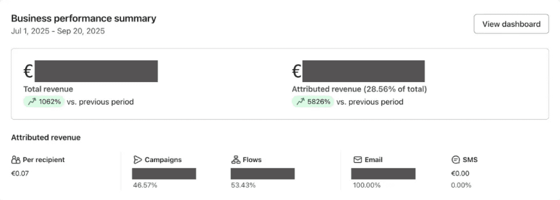 → Le revenu attribuable à l’email atteint plus de 28 %, dont 15 % via les flows automatiques.