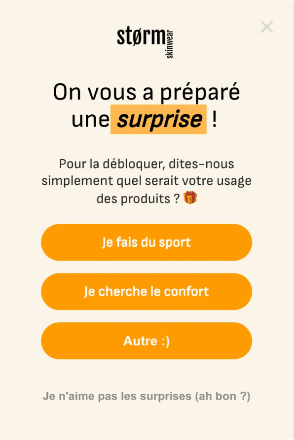 L’objectif de la Pop Up est double : booster au maximum les opt-ins tout en intégrant une logique de segmentation.